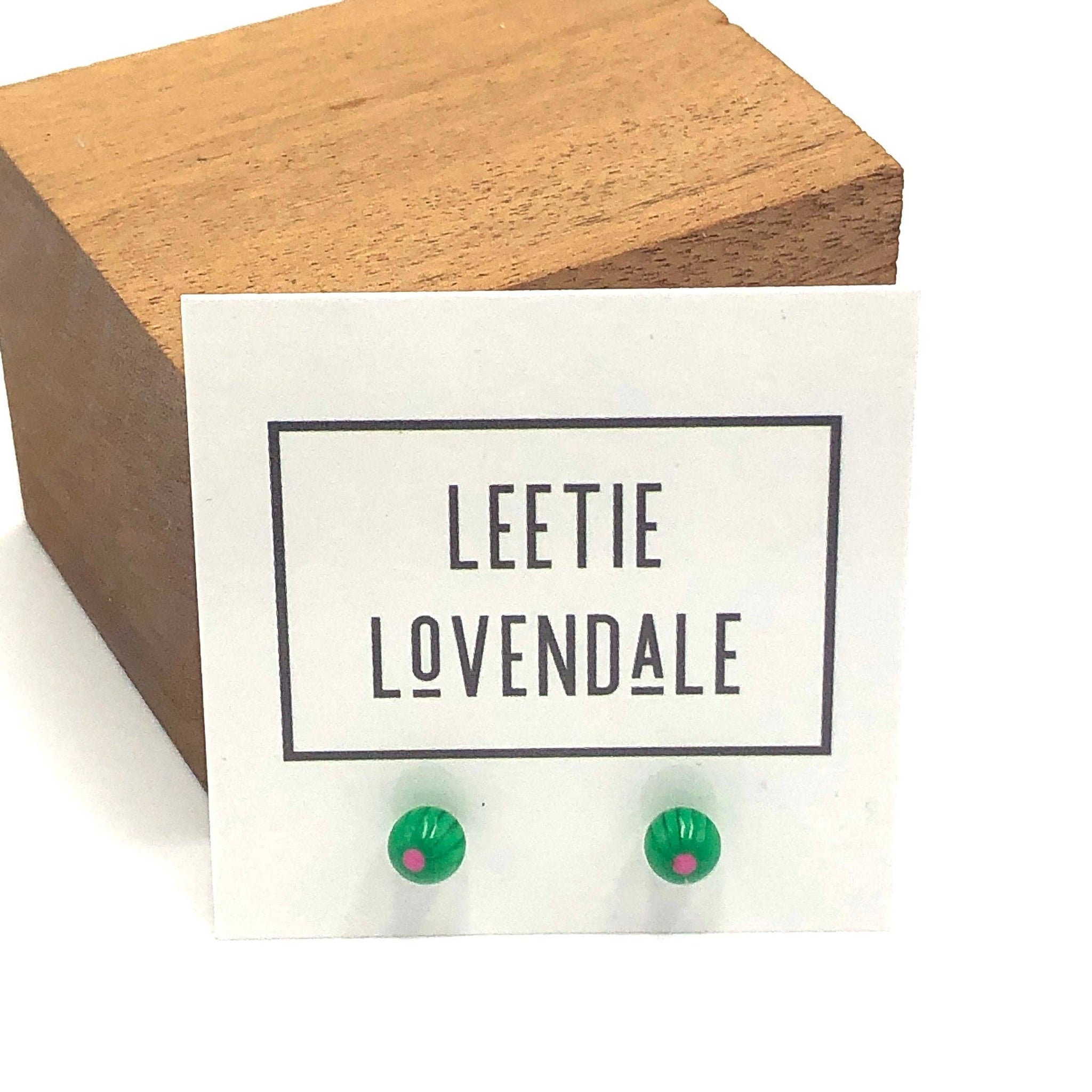 Teeny tiny green & pink ball stud earrings. Perfect for a second ear pierce or for your Mini Mae!