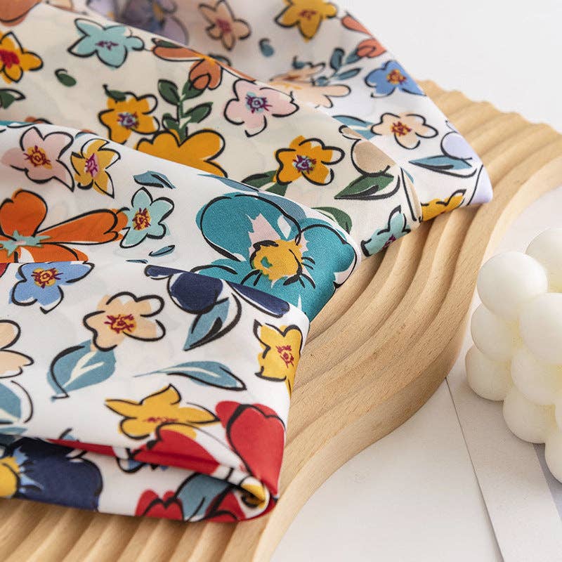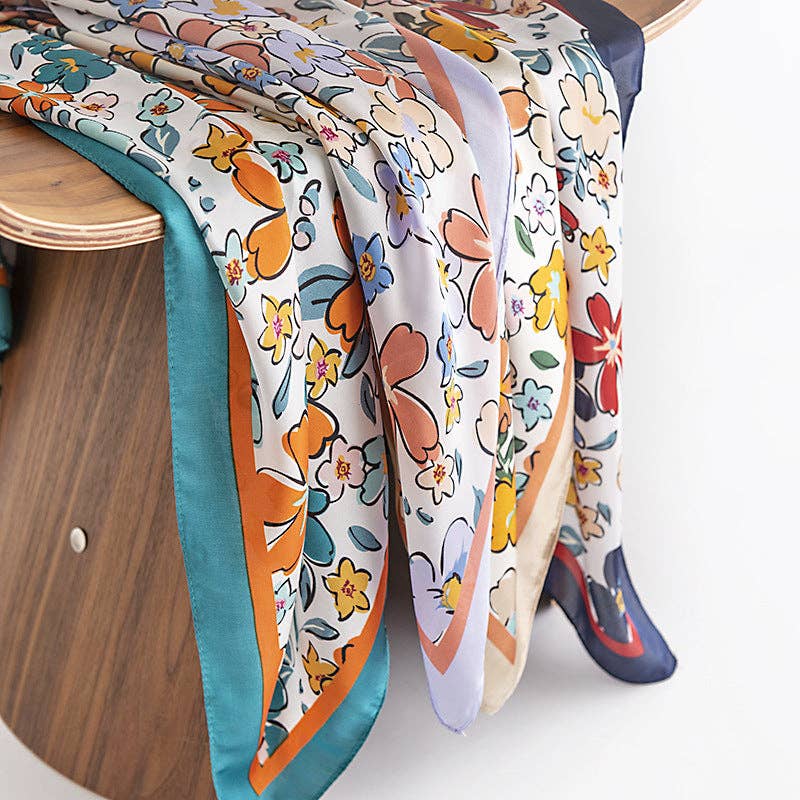 Adorned with a charming array of tiny flowers, this square scarf adds a playful and sweet touch to any outfit, perfect for those who love a touch of nature in their accessories.